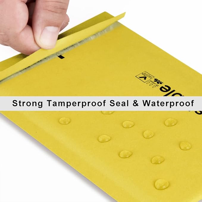 - Each bubble envelope contains a four-season self-sealing adhesive strip. The strong stickiness prevents your items from being tampered with during transportation, even in extreme hot or cold weather. Please note: store these compostable padded shipping envelopes in a cool, dry location and avoid direct sunlight. The shelf life is 12 months.
