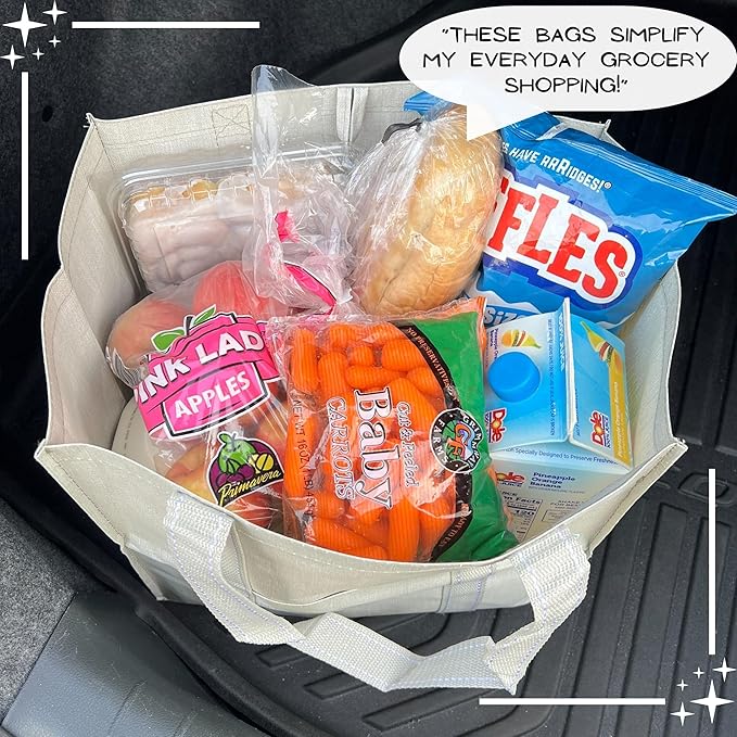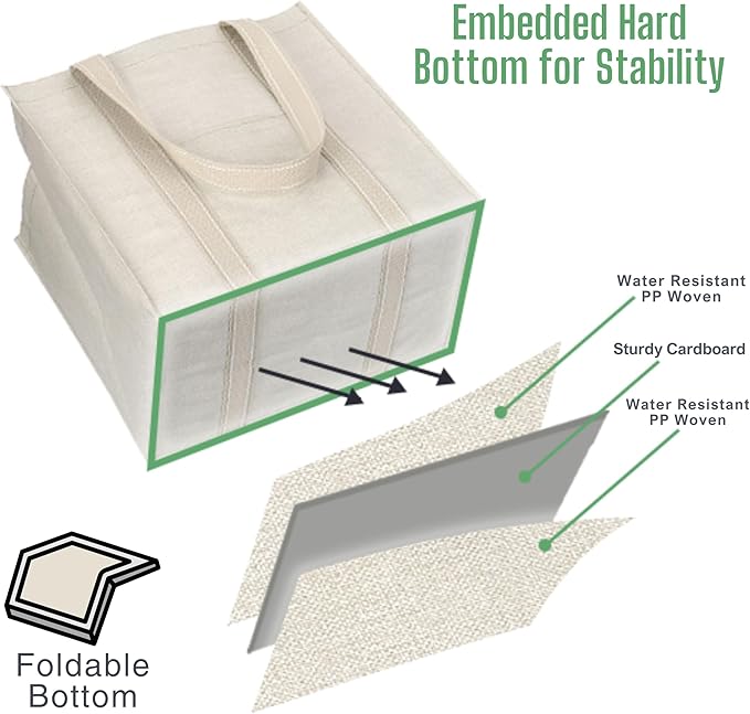 - Stays Upright & Easy to Shop w/ Hard Bottom – Keep your items stable and from tipping over when carrying the tote bag or when placed in your car, trunk, shopping cart, counter, or floor with the hard bottom! Easily load and unload with this sturdy bag which stays upright and maintains its shape due to the hard bottom. Place a set of 4 bags in your shopping cart for easy, convenient, and organized shopping!