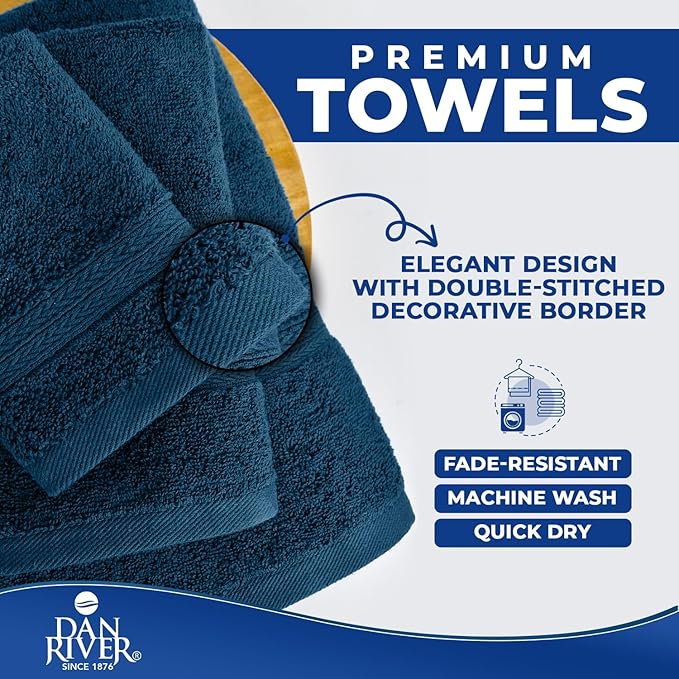 DAN RIVER 8 PC Luxury Bath Towels for Bathroom, 2 Bath, 2 Hand, and 4 Wash Cloths, 600 GSM 100% Ring Spun Cotton Towel Set, Highly Absorbent, Gym, Hotel, and Spa, Blue Opal