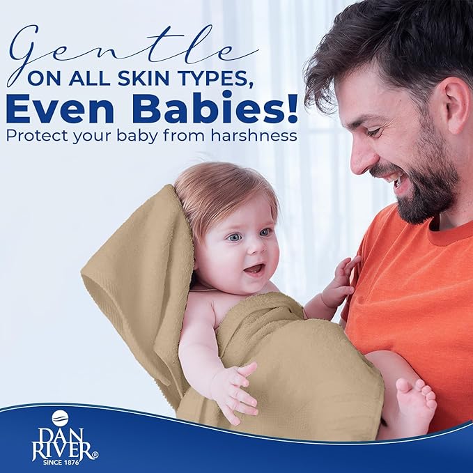 DAN RIVER 8 PC Luxury Bath Towels for Bathroom, 2 Bath, 2 Hand, and 4 Wash Cloths, 600 GSM 100% Ring Spun Cotton Towel Set, Highly Absorbent, Gym, Hotel, and Spa, Tan