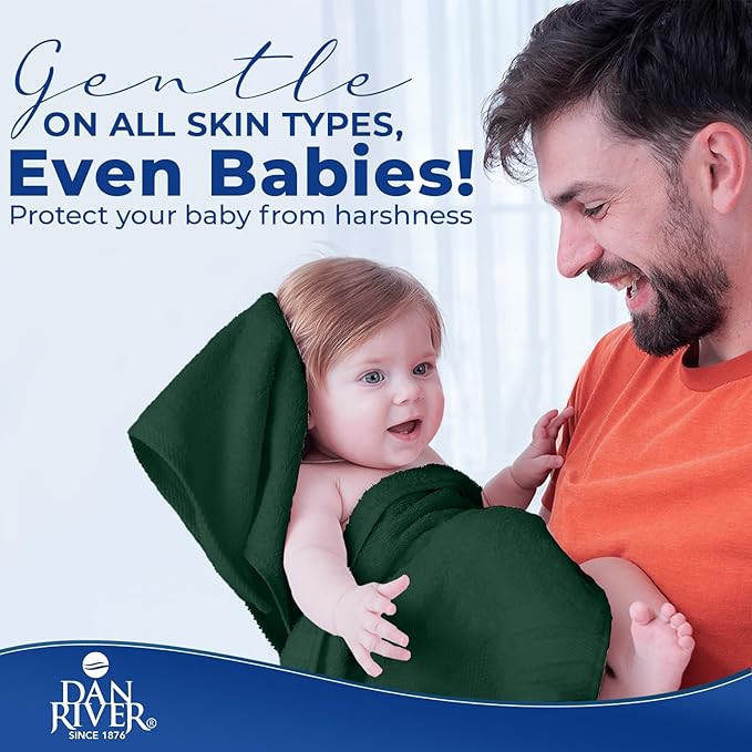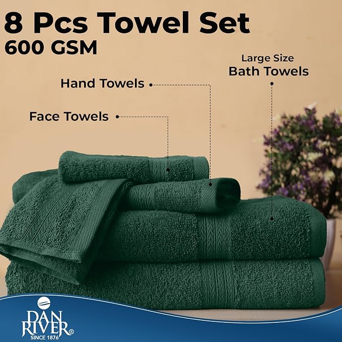 DAN RIVER 8 PC Luxury Bath Towels for Bathroom, 2 Bath, 2 Hand, and 4 Wash Cloths, 600 GSM 100% Ring Spun Cotton Towel Set, Highly Absorbent, Gym, Hotel, and Spa, Hunter Green