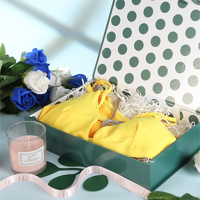- MULTI-PURPOSE: Enhance your gifts with this lovely and elegant gift box featuring a charming polka dot interior design, suitable for various occasions such as Christmas, birthdays, weddings, Father's Day, Mother's Day, and graduations and more other gift giving occasions. It can hold presents like T-shirts, gloves, candies, homemade crafts, mug, cups,wine glass, bath bombs,baby clothing and more