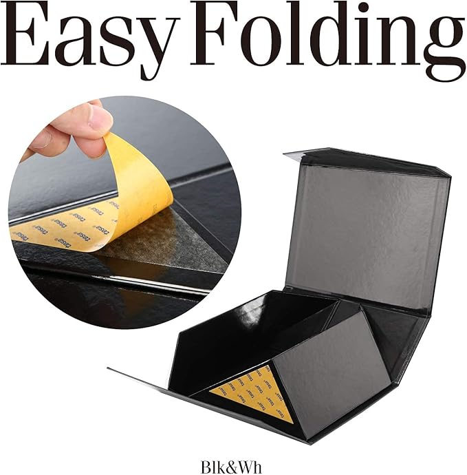 BLK&WH Gift Box 9x6.5x3.8 Inches, Black Gift Box, Groomsman Box, Collapsible Box with Magnetic Closure Lid for Gift Packaging (Glossy Black with Grass Texture)