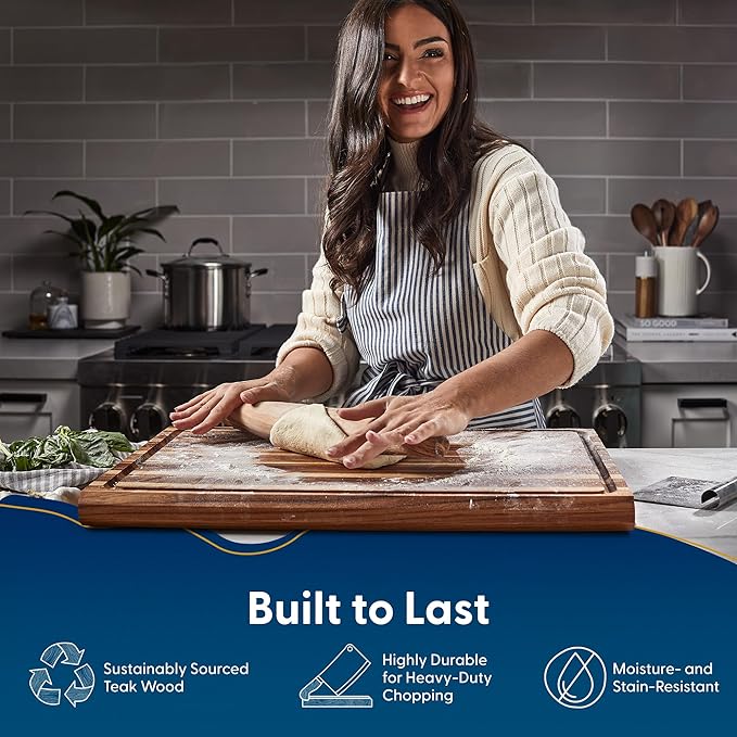 Sonder Los Angeles, XXL Thick Edge Grain Teak Wood Cutting Board for Kitchen with Juice Groove, 23x17x1.5 Charcuterie Wooden Board in Large (Gift Box Included)