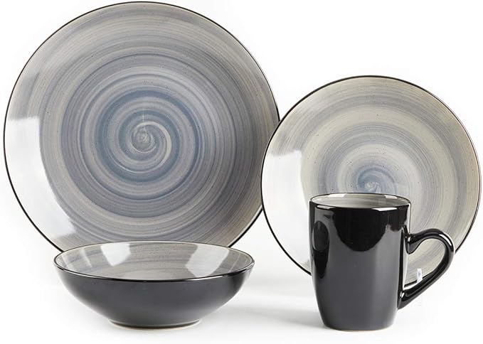 - Service for 4: 16pc Dinnerware Set including 4 of Each Dinner Plate 10.5", Salad Plate 8", Soup/Pasta Bowl 7", Mug 13oz