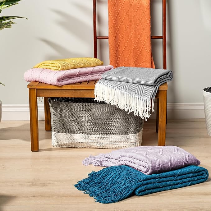 - DURABLE AND EASY TO CARE: Machine wash separately in cold water, Tumble Dry Low. The decorative throw blanket for couch is durable and gets softer with each wash! The accent throw blanket with fringe tassel is wrinkle resistant, no color fading, no shrinkage, no unraveling, and doesn't shed.
