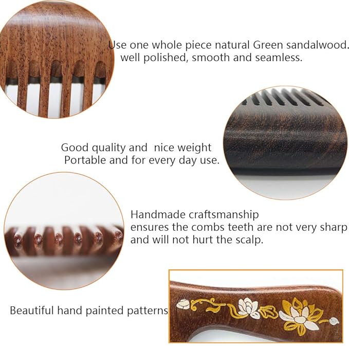 Handmade Wooden Comb, Fine Teeth Sandalwood Comb for Wavy hair, No Static Combs for Men Women ,Wooden Hair Comb with Handle