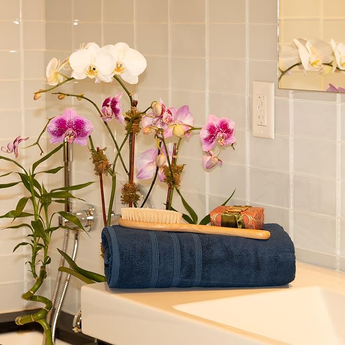 - 50% Viscose Made From Bamboo & 50% Aegean Turkish Combed Cotton, 700 GSM, Dobby Border, 2-ply Twisted Yarn – Carefully crafted with optimal weight and thickness to soak up water and comfort your skin. Double twisted yarns are spun out of extra-long fibers to ensure superior quality and performance. Buy individually or in Family Multi-Packs.