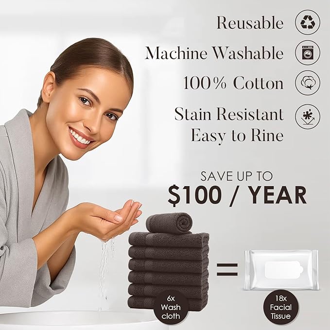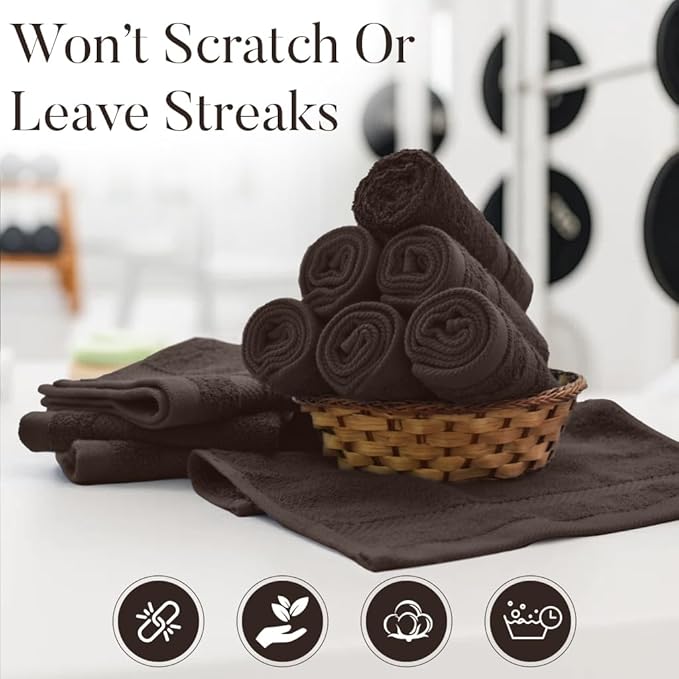 DAN RIVER 12-Pack Premium 100% Cotton Brown Face Towels – Reusable Face Towel Set, Soft & Absorbent Bath washcloths for Bathroom & Body – Hand and Face Towels, 550 GSM (12x12 in)