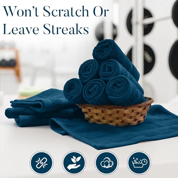 DAN RIVER 12-Pack Premium 100% Cotton Blue Opal Face Towels – Reusable Face Towel Set, Soft & Absorbent face Towel for Showering – Hand and Face Towels, 550 GSM (12x12 in)