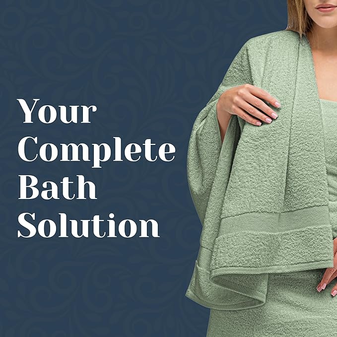 White Classic Luxury Bath Towel Set of 8 Pieces - 100% Turkish Cotton Highly Absorbent Towels for Bathroom, 2 Luxury Bath Towels 700GSM, 2 Hand Towels, 4 Washcloths, Green