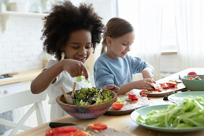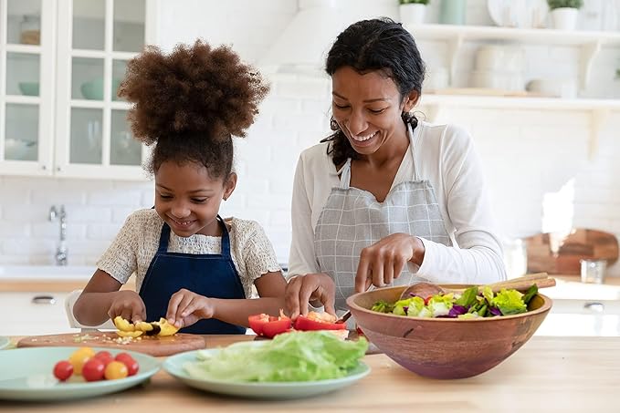 - FAMILY-SIZE 11.5" BOWL (HOLDS 4–6 SIDE SALAD SERVINGS): Perfect large wooden salad bowl for family meals, includes 11.5" serving utensils with rounded handles for easy tossing.