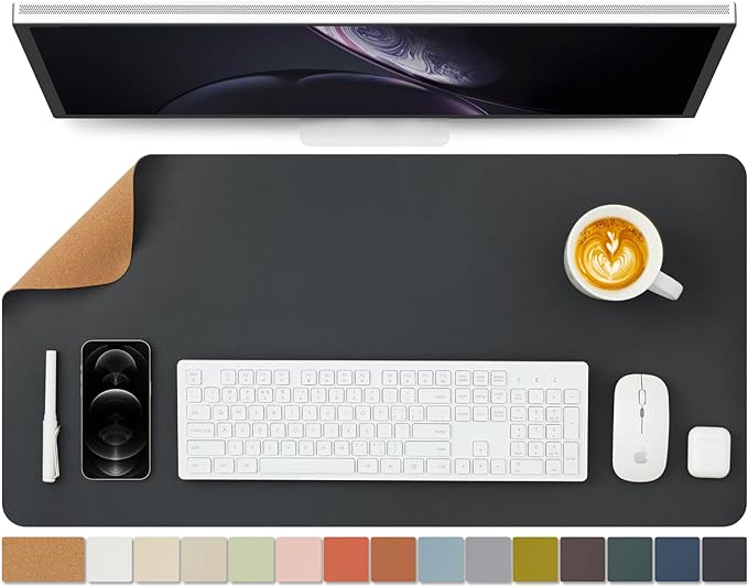 - Eco-friendly dual-sided design with Versatile Surface: Our desk mat combines a sustainable cork side and a premium PU leather side, offering both versatility and eco-conscious style for your workspace. The smooth surface supports seamless mouse operations and effortless writing tasks, promoting desk organization.