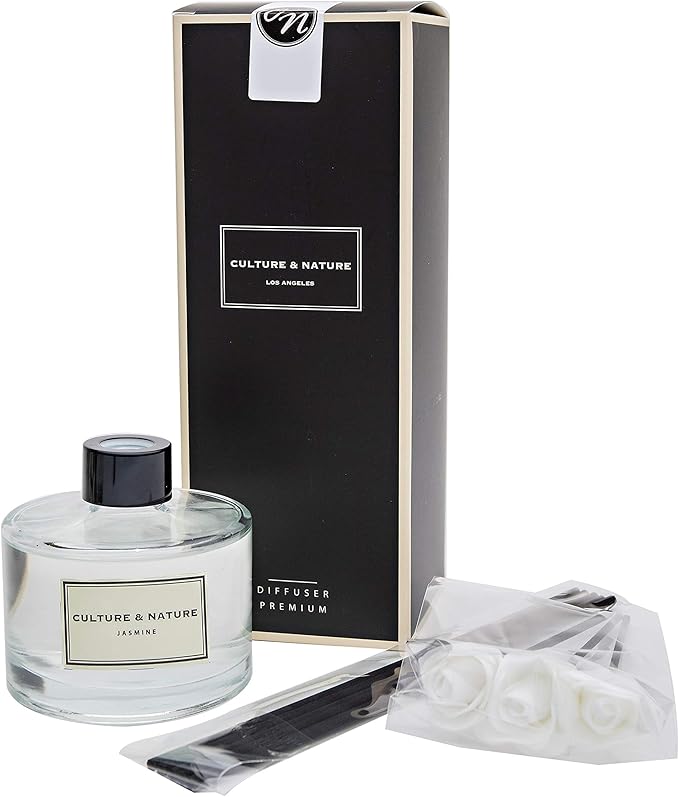 CULTURE & NATURE Reed Diffuser Set 6.7oz (200ml) Jasmine Scented Diffuser with Sticks Home Fragrance Reed Diffuser for Bathroom Shelf Decor