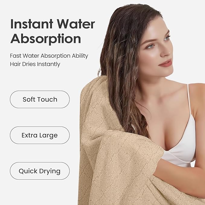 JML Microfiber Bath Towels, Oversized, Ultra Soft, Super Absorbent and Fast Drying, No Fading Large Bathroom Towel Set for Sport, Travel, Fitness, SPA and Yoga (Coral Fleece - Camel, 30 in x 60 in)