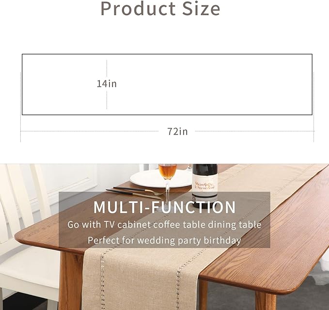 - PERFECT DECORATION - It's a natural and luxury feel table runner, very refined, durable and lightweight. Simple color that creates simple elegance. Size: 14 x 72 inches, Pack of 1. Perfect length for 4ft tables, dresser or mantel etc.