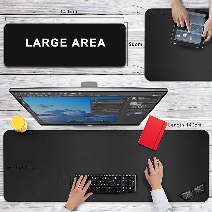 - Protect Your Desk:from spills, scratches and stains with our desk pad/ mouse pad made from quality materials using PU leather plus a suede bottom for extra grip to prevent the desk pad from sliding.
