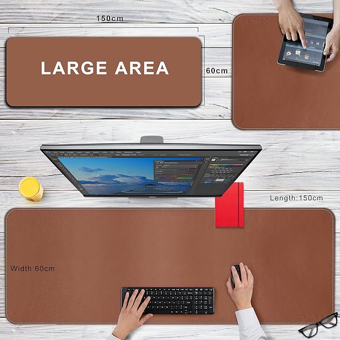 - Protect Your Desk:from spills, scratches and stains with our desk pad/ mouse pad made from quality materials using PU leather plus a suede bottom for extra grip to prevent the desk pad from sliding.