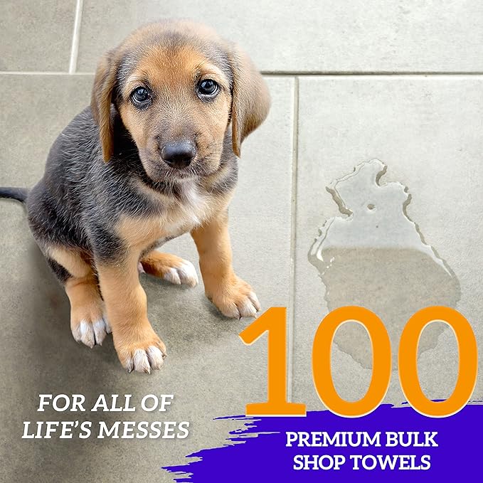 - Set Includes 100 Shop Towels in blue measuring 14 by 12 inches each
