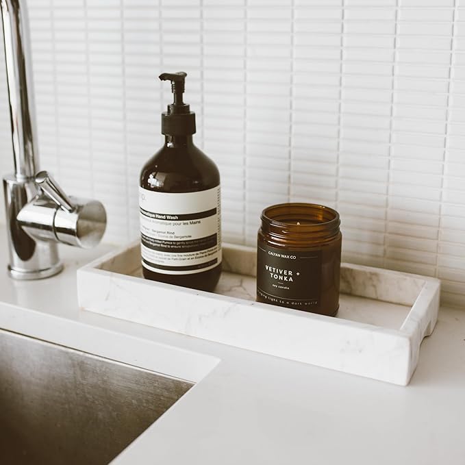 Calyan Wax Co. Vetiver & Tonka Scented Candle - 57 Hour Burn - Luxury Non Toxic Soy Wax Candles - Long Lasting Amber Glass Jar Candle for Home - 7.2oz