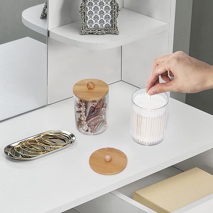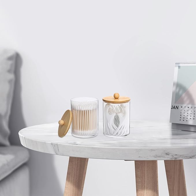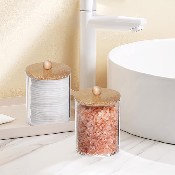 Tbestmax 10-Ounce Qtip Holder Bathroom Jars Canisters for Cotton Ball Swab Pad Storage Dispenzer, Bamboo Lid (2 Pack)
