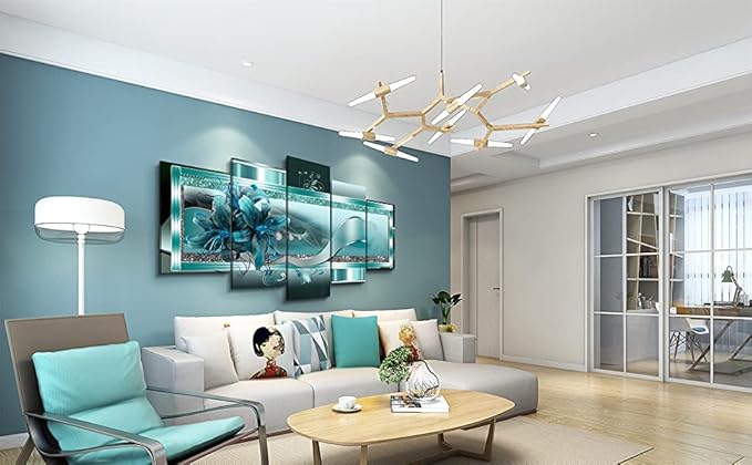 LUDUHU Turquoise Orchid Flowers Canvas Print - Abstract Green Floral Poster, Orchid Wall Art Painting Decor for Home Decoration Artwork Picture Bedroom Green Floral (A,Oversize 40x20inch)