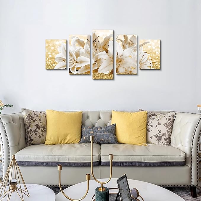 - Flower Canvas Wall Art: Oversize 60x30inch=12x18inchx2pcs+12x24inchx2pcs +12x30inchx1pcs (150x75cm=30x45cmx2pcs+30x60cmx2pcs+30x75cmx1pcs)