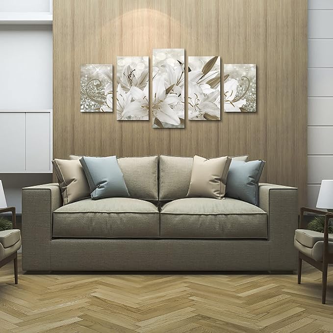 LUDUHU White Orchid Flowers Canvas Print - Abstract Floral Wall Art, Flower Poster, Painting Decor for Home Decoration Artwork Picture Bedroom (B,Oversize 60x30inch)