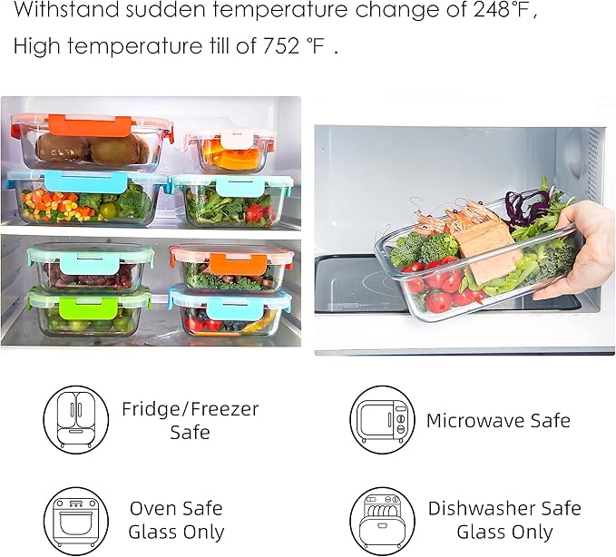 - OVEN, MICROWAVE, DISHWASHER SAFE: This food storage container is very suitable for heating food in a microwave or oven (without lid), and it can also be washed in a dishwasher (without lid).The container can withstand high temperatures and sudden cooling.