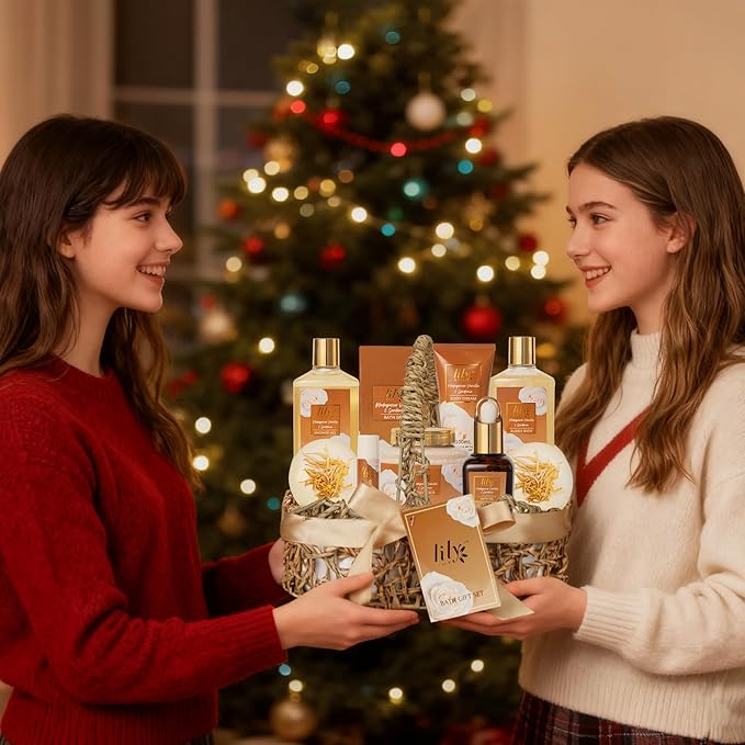 - COMES WITH A REUSABLE WEAVED BASKET: LILY ROY bath gift baskets for women have upscale and beautiful baskets that make a multi-purpose storage solution to keep your beauty essentials. It also creates a unique decoration for your bathroom, vanity table, powder area, and more. It also has a gift note card for you to personalize it