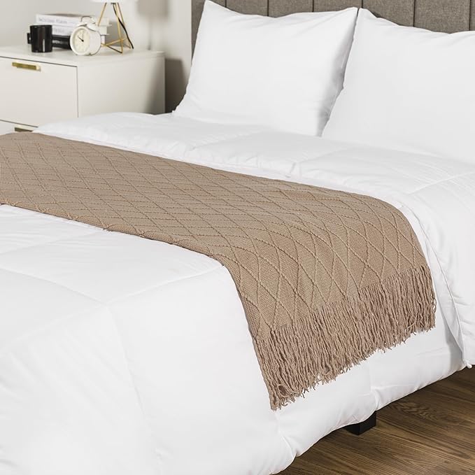 - DIAMOND KNIT TEXTURED DESIGN: The aesthetic blanket features beautiful textured patterns and fringe tassel, and can easily mix and match any home decor, living room and bedroom. Also perfect as a decorative throw for foot of bed and couch cover, the bohemian blanket complements and accents any bed, couch, sofa and chair.