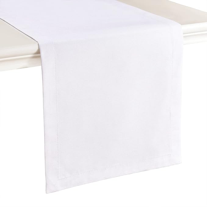 Mebakuk Linen Farmhouse Table Runner Large Burlap Style Soft and Waterproof Decorative Fabric Runner for Outdoor Wedding and Dinner (14 x 108 Inch, White)