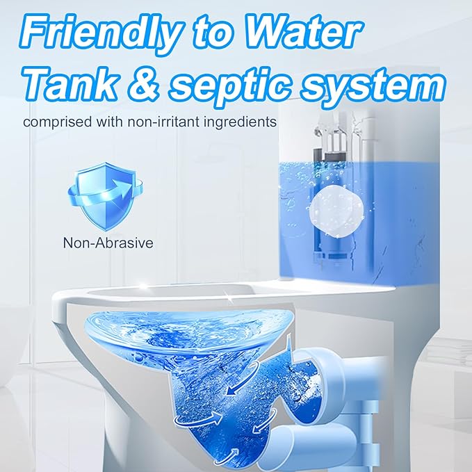 - NEUTRAL INGREDIENTS: Kiisiiso toilet bowl tablets are made entirely of dye-free, neutral ingredients, and each packet is carefully packaged to ensure that it will not come into direct contact with your skin or damage any metal or plastic parts of your septic system (These tablets are slow-release tablets, designed to dissolve gradually over 1-2 weeks, not mel away immediately.)