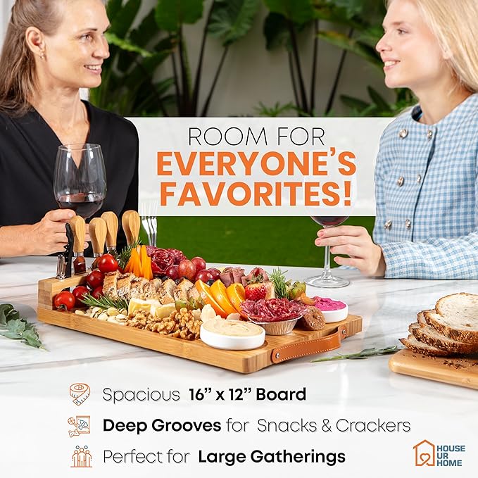 - Entertain Like a Pro – Delight guests with House Ur Home's bamboo cheese board and charcuterie set. Ideal for showcasing cheeses, meats, crackers, fruits, dips, and more, this board is your go-to entertaining essential.