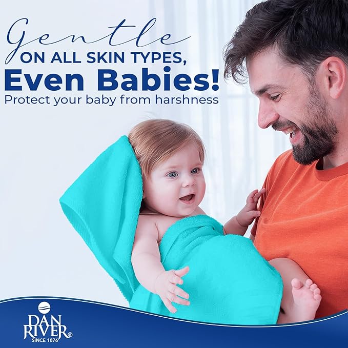 DAN RIVER 8 PC Luxury Bath Towels for Bathroom, 2 Bath, 2 Hand, and 4 Wash Cloths, 600 GSM 100% Ring Spun Cotton Towel Set, Highly Absorbent, Gym, Hotel, and Spa, Aqua