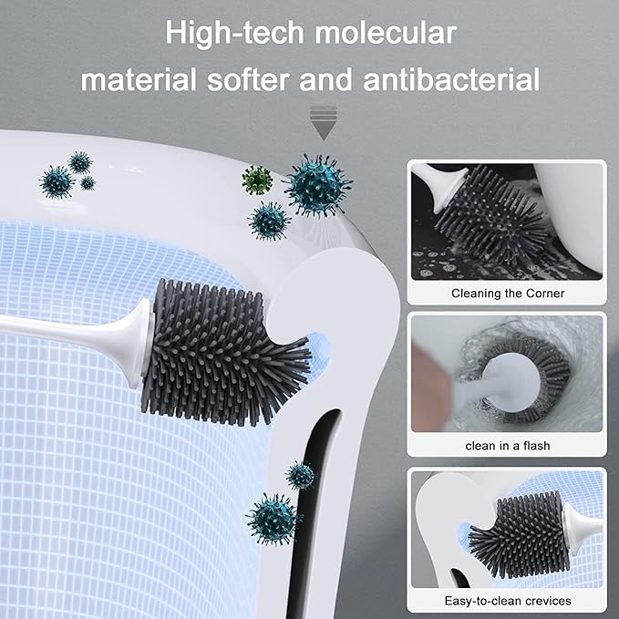 - Clean Thoroughly - The toilet bowl brush and holder has a soft silicone rubber head which can easily reach these grooves to clean thoroughly.