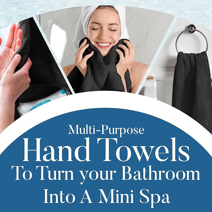 DAN RIVER 6-Pack Premium Hand Towels (16x28 Inches) - 100% Cotton, Ultra Soft, Lightweight, Highly Absorbent Towels for Bathroom, Spa, Gym, Salon, Hotel, and Travel - 550 GSM โ Black