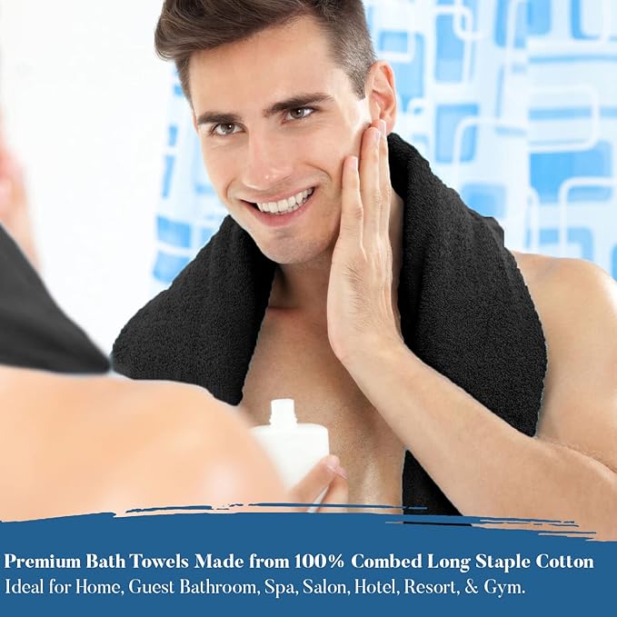 DAN RIVER Bath Towels Set of 4, 27 x 54 Inches, 100% Cotton, Larger & Lighter Weight, Quicker to Dry, Super Soft and Absorbent, Ideal Black Bath Towels for Daily Use