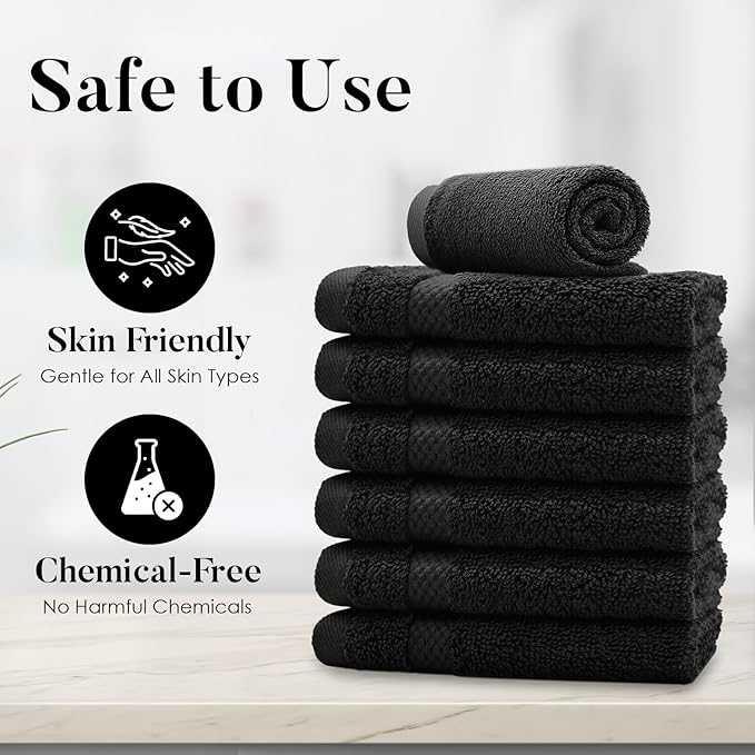 DAN RIVER 12-Pack Premium 100% Cotton Black Face Towels – Reusable Face Towel Set, Soft & Absorbent Rough Wash Cloths for Bathroom & Body – Hand and Face Towels, 550 GSM (12x12 in)