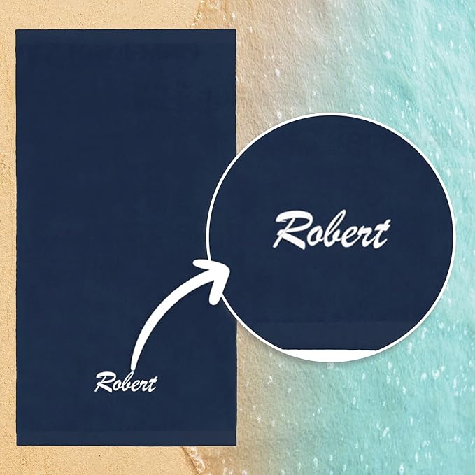 Kaufman - Personalized Velour Beach and Pool Towel 100% Cotton 30in X 60in Solid Color Bath Towel Embroidered (Cobalt)