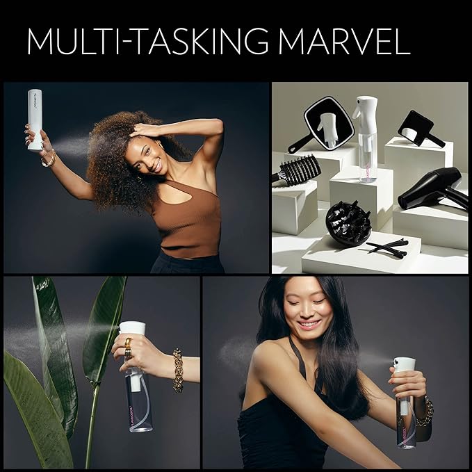- MULTI-TASKING MARVEL: Countless uses in and out of the home. The mister spray bottle with an ultra-fine mist sprayer is ideal for professional salon use or your everyday hair and body care routine. Plus, this continuous water spray bottle for hair is also great for self-tanning, home cleaning, disinfecting, pet grooming, plant care, car care, arts & crafts, and much more!