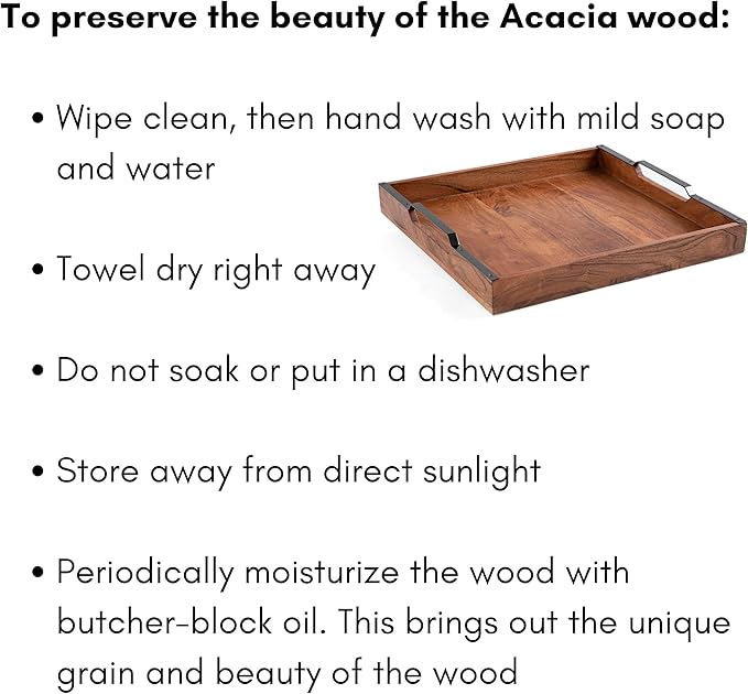 - DECORATIVE SERVING: the perfect sturdy tray for breakfast in bed or serving guests appetizers, tea, coffee, food, snacks, cheese, drinks or cocktails. The tray is also great for adding a decorative accent to your coffee table or kitchen table