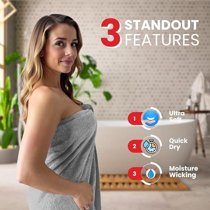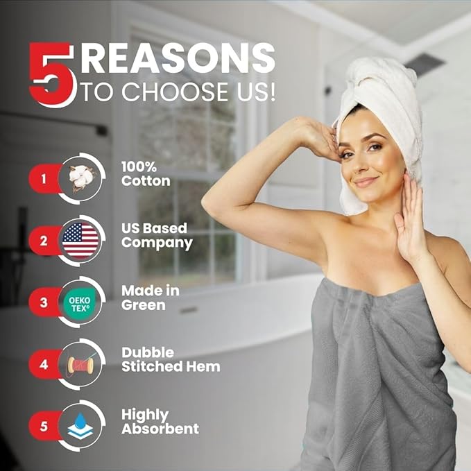 - PREMIUM QUALITY: Our bath towels are made from 100% ring spun cotton, these towels are incredibly soft and plush. They offer a luxurious feel against your skin, making every bath or shower a spa-like experience.