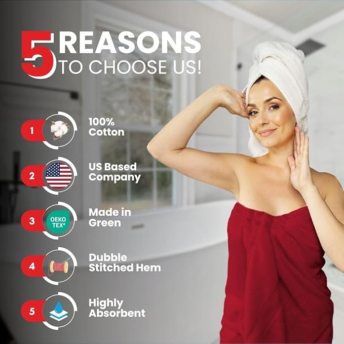 - PREMIUM QUALITY: Our bath towels are made from 100% ring spun cotton, these towels are incredibly soft and plush. They offer a luxurious feel against your skin, making every bath or shower a spa-like experience.