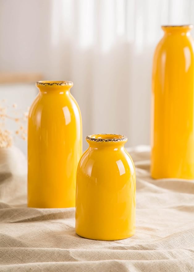 - Dress your home with personality - this 3-piece yellow vase set features a matte finish in a muted color palette, elegant and relaxing aesthetics, and a sophisticated home decor that adds space to your home and complements a variety of home styles - farmhouse, country, rustic, and even modern.