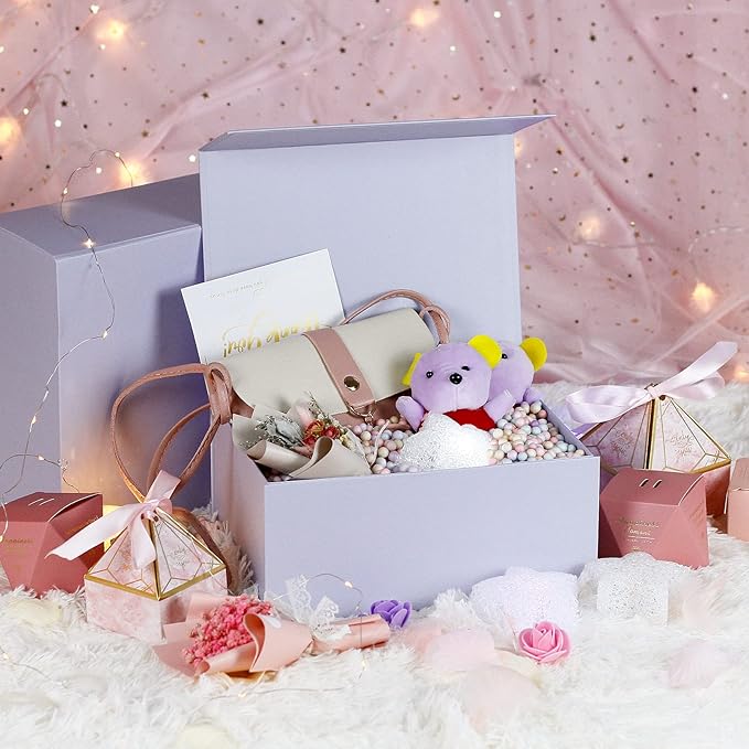 - 💝Perfect Size: The gift box measures 9x7x4 inches and can hold gifts such as cakes, cupcakes, jewelry, candy, mini wine bottles, soap, bath bombs and more, making it the perfect size for bridesmaid gifts.