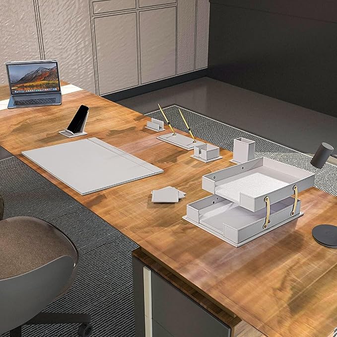 MOOGCO Bonded Set - Desk Accessories - Leather Desk Organizer - Bonded Leather Set - Office Desk Accessories - Home Office Accessories - Desk Supplies - Leather Desk Set - Office Accessories