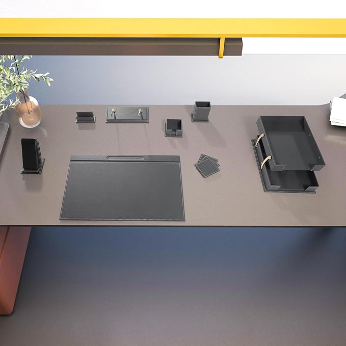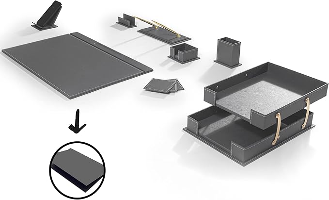 MOOGCO Bonded Set - Desk Accessories - Leather Desk Organizer - Bonded Leather Set - Office Desk Accessories - Home Office Accessories - Desk Supplies - Leather Desk Set - Office Accessories