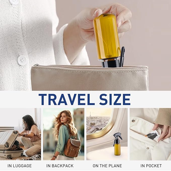 - Specification Capacity: 50ml/2oz, package: 5pcs. The travel mist bottle also can be a portable hair spray bottle and great for travel, vacation, camping, business trips and daily life