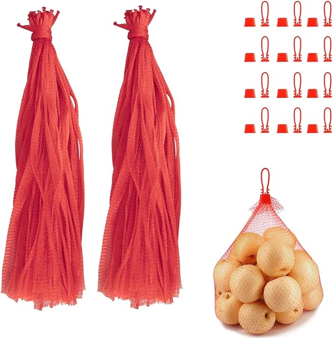 100pcs Seafood Boiling Bags, Plastic Reusable Mesh Produce Bags, Crawfish Bags Boiling Bags, Mesh Onion Bags, Fruit and Vegetable Produce Bag (24inch and Loop-Style Closures red)